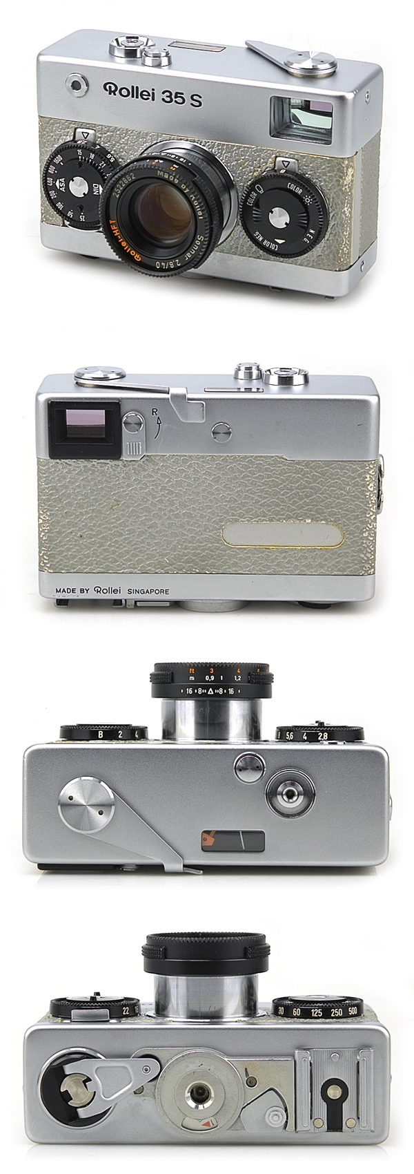 이 카메라 종류만큼 사연 많습니다. 우선 메니아를 겨냥한 금장로레이 35는 20년전에는 국내에서 100만원이상 호가했습니다. 독일 본토 생산품외에 싱가폴에서 조립했고요. 티타늄 재질이 아주 고급스럽습니다.