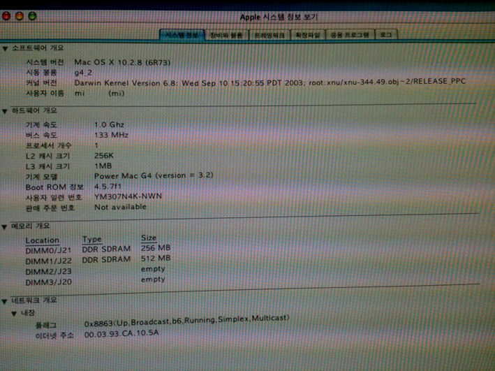파워맥 g4 1.0ghz이고 상세한 정보는 점부 이미지에서 봐주세요.