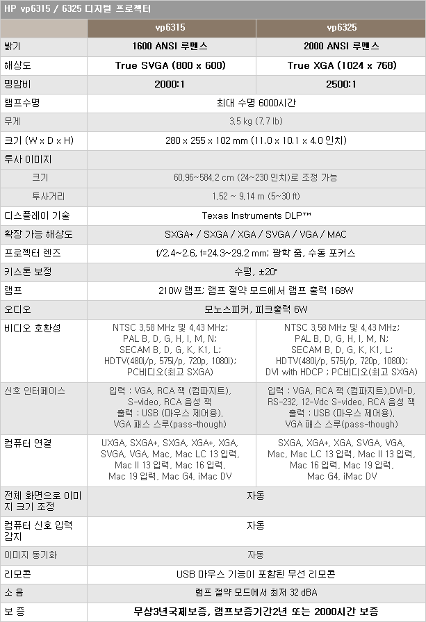 영화매니아를 위한 HP vp6325 DLP 프로젝트 팝니다