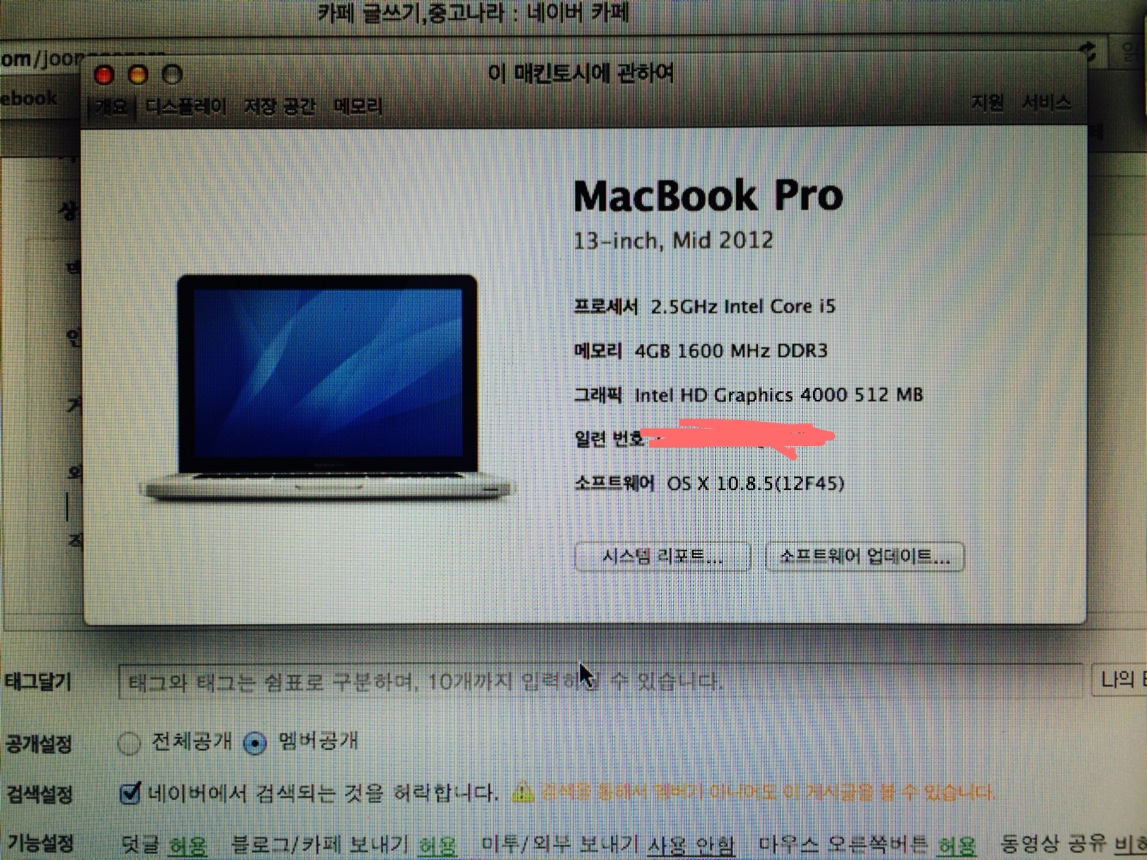 맥북프로 2012년 mid 팝니다. 13인치 기본형이구요