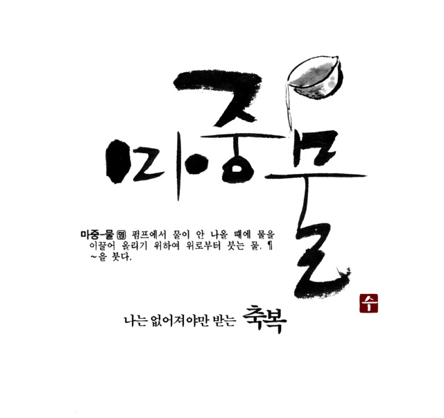 예인님 저도 캘리 부탁드려도 될까요? zenith 일반 0 5798 2009.05.11 23:19 매번 보기만 하다가 용기내서 초면에 부탁드립니다. 지역에 조그만 어머니 모임 명함에 들어갈 로고체구요 작지만 의미있는 모임이라 이쁘게 만들어 드리고 싶어서요. "마중맘"이라고 써주시면 될것 같습니다 마중물이란 순우리말에서 만드셨다고 하네요 샘플 하나 올려드리겠습니다 부탁드립니다