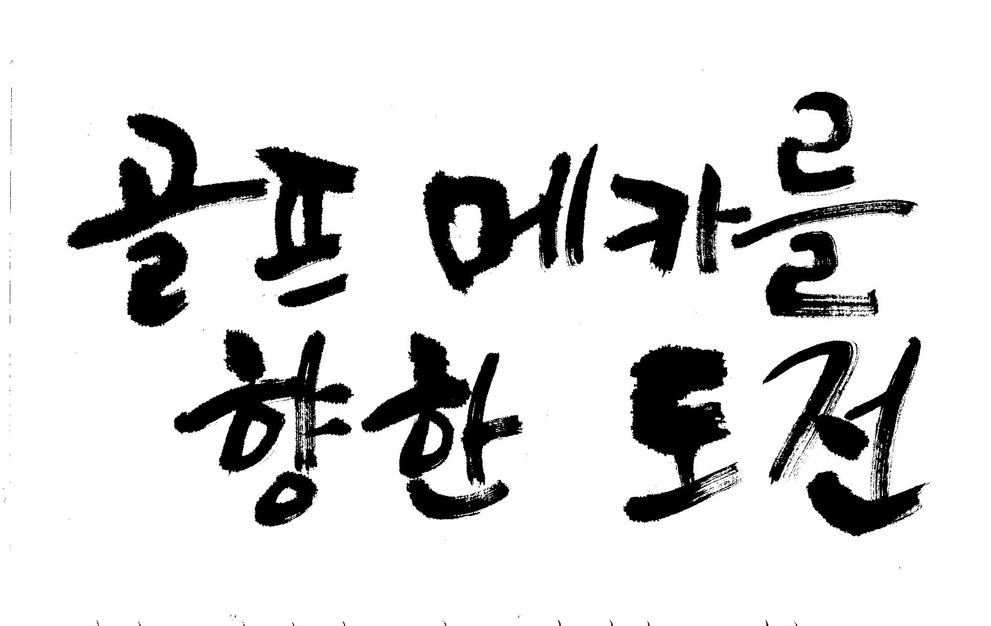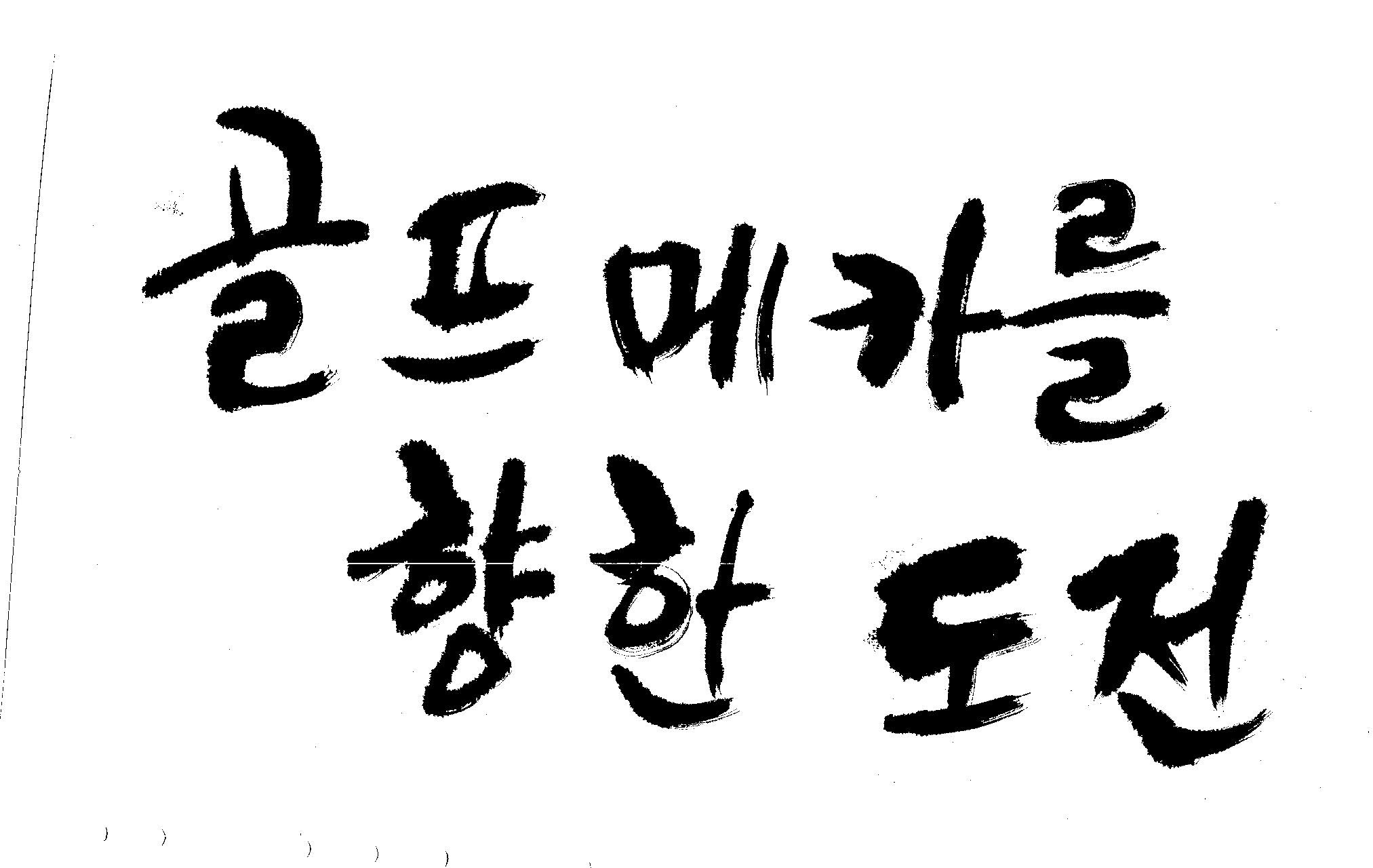 우경의 행복한 캘리세상-골프메카 김철호 일반 0 8386 2009.07.18 10:26 > > 리듬감을 최대한 살리고 ㅡ 스포츠의 운동감과 밝음 > 기교섞인 획을 배제--일반적인 느낌 > 굵기변화를 통하여 도전 낱말을 강조 > 스타일은 비슷하지만 ...한 사람이 썼으니까 ㅎㅎㅎ > 서로 다른 글꼴을 올린 것은... 비교하여 보시고... > 편집자에게 선택권을 주는 것입니다 >