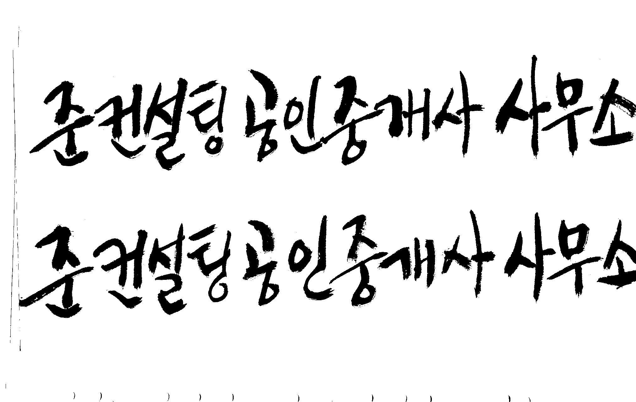 캘리를 부탁합니다.(죄송합니다) 김철호 일반 1 11259 2009.01.04 23:55 > > 1. "준컨설팅 공인중개사 사무소" > 2. 빌딩이나 건물형태 > > 명함과 Sign물을 제작하려 합니다. > 아무래도 요즘 대세가 캘리그라피인것 같아 의뢰하게 되었습니다. > 너무 편하게 작업하려는 것 같아 고개가 숙여 집니다. > 부탁 드립니다. > 유용하게 쓰세요..