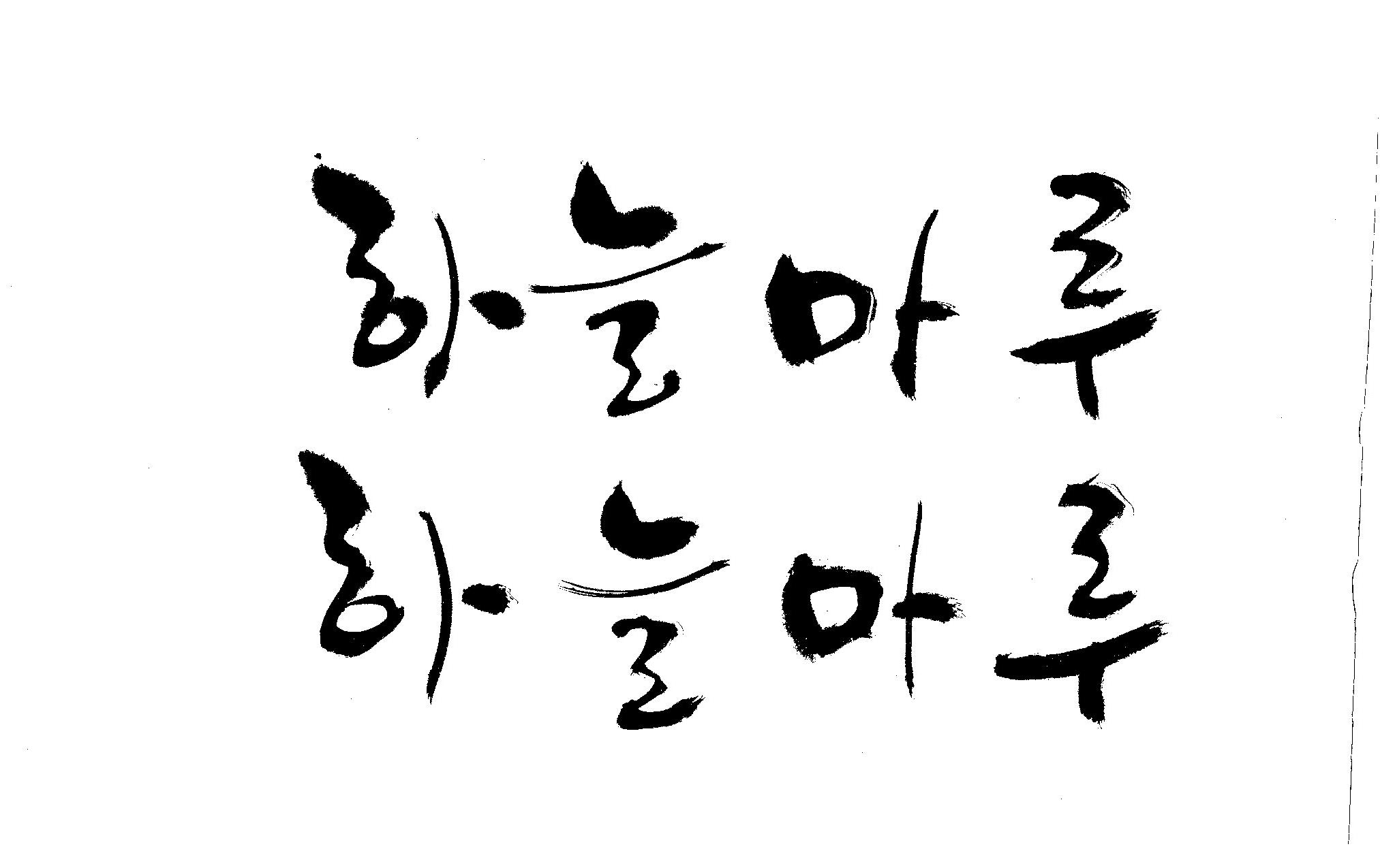 캘리 좀 부탁드립니다. 김철호 일반 0 9023 2009.02.16 23:14 > > "하늘마루" 라는 이름인데, 노인복지시설에서 발행하는 소식지 제목입니다. > 기존 서체와는 다른 고유한 이름을 정하고 싶어 이렇게 부탁드립니다. >