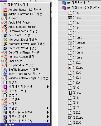 우측처럼 포토샵이나 쿼크 아이콘이 백지로 바뀌었습니다.