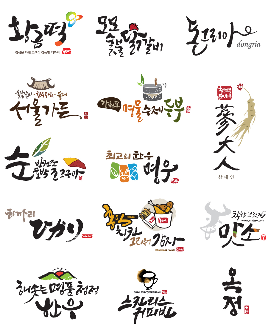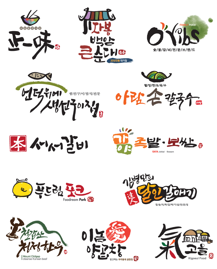 캘리그라피로 만든 다양한 음식점, 식품업계 간판/로고작업
