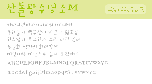 쿨째즈체, 광수명조체 아웃라인 부탁드립니다.